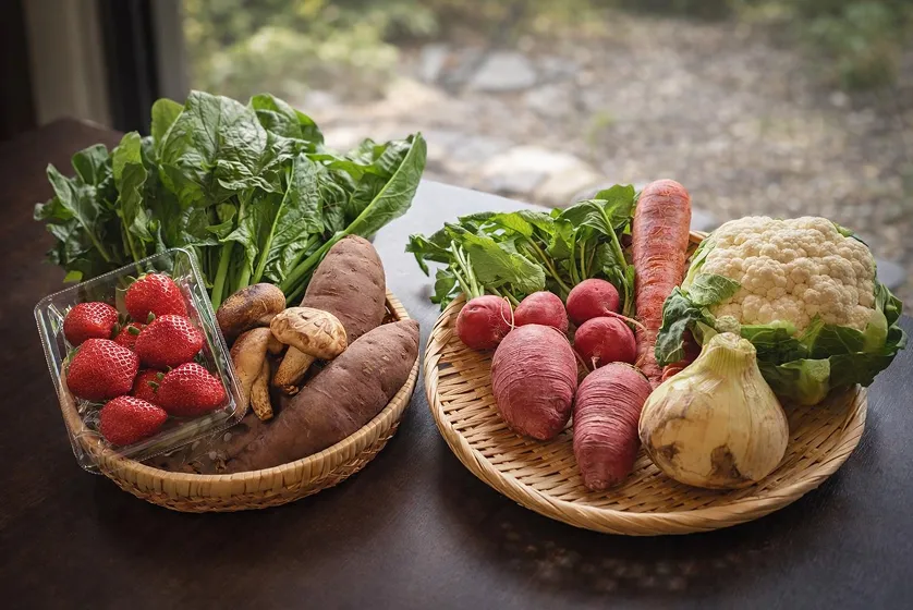 旅庵川喜では、地元の無農薬の新鮮な野菜や果物の味を最大限に活かすために、調味料にも一切の妥協をいたしません。