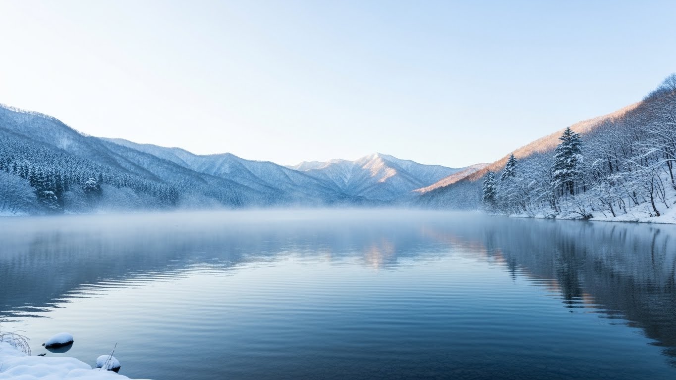 日が高くなる頃には、仁科三湖へと足を延ばしてみましょう。青木湖は冬になると音を吸い込むような静けさをまとい、水面は空と山を映す一枚の絵のようになります。中綱湖や木崎湖も同様に、季節が余計な色をそぎ落とし、風景の本質だけを残してくれます。湖畔を歩く時間は長くなくて構いません。冷たい空気に触れ、湖の沈黙に耳を澄ます、その短いひとときこそが冬の大町らしい過ごし方です。体が冷えてきたら、大町温泉郷へ。冬の温泉は、移動そのものが楽しみの一部になります。雪を踏みしめる音、湯宿の灯り、立ちのぼる湯けむり。そのすべてが、これから温まる時間への前奏曲のようです。湯に身を沈めると、冷えた体の奥からゆっくりと緩み、外の静けさがそのまま内側に流れ込んでくるのを感じます。冬の大町では、温泉は単なる癒しではなく、旅のリズムを整える装置のような存在です。夕暮れが近づくと、町の表情はさらに穏やかになります。早めに宿へ戻り、薪ストーブの火を眺めながら過ごす時間や、窓越しに雪の降り方を確かめるひとときは、冬旅ならではの贅沢です。派手な予定を詰め込まなくても、温かい飲み物と静かな音楽があれば十分。大町の冬は、「何もしない時間」に価値があることを、そっと教えてくれます。そして、冬の旅を心地よくするためには、少しだけ準備が必要です。防寒具はもちろん、滑りにくい靴や、朝晩の冷え込みを想定した服装があると安心です。天候や積雪状況に合わせて予定を柔軟に変える余裕も、大町の冬を楽しむ大切な支度のひとつと言えるでしょう。自然のリズムに身を委ねることで、旅はより深く、記憶に残るものになります。朝と夜、雪の日を味わう——冬の大町で出会う時間の深さ