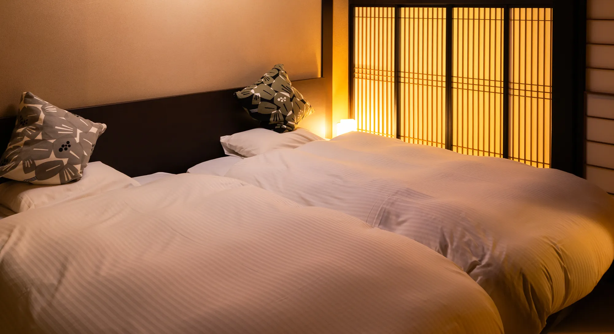 本宿の洋室タイプ客室は、和の趣と現代的な快適性を融合した「和モダンスタイル」。