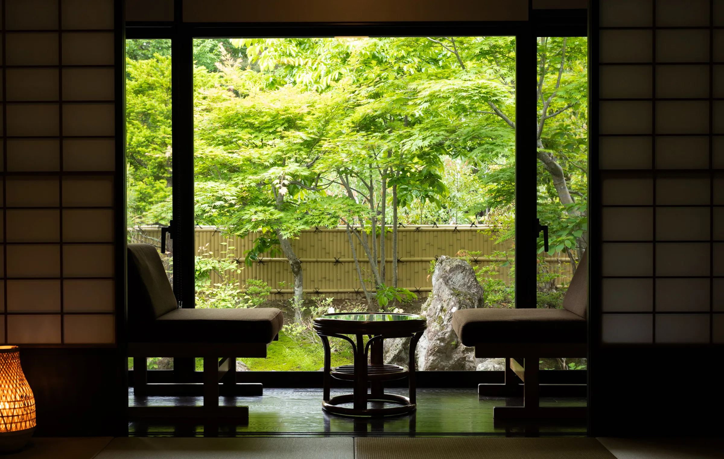 Wake up with gentle morning sunlight streaming through the shoji screens, and fall asleep at night surrounded by the seasonal breeze.